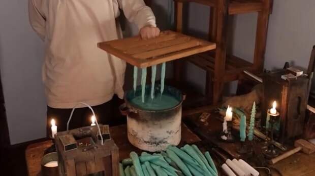 - Намотанный на рейку фитиль окунался в расплавленный воск.Как только схватывался первый слой, фитиль снова окунали.Так продолжалось 33 раза подряд – по аналогии с возрастом Иисуса Христа.