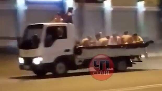 На кадрах видно, что в кузове машины была установлена ванна с горячей водой, в которой плескались несколько мужчин.