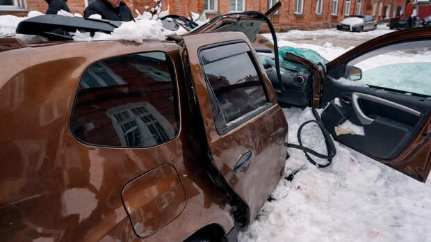 Второй случай зафиксирован в тот же день в Соликамске. Снежная масса сошла с крыши торгового центра на автомобиль, припаркованный рядом со зданием.