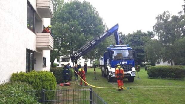 В Германии 30 пожарникам пришлось приехать с погрузочным краном для того, чтобы вытащить из квартиры жителя весом в 200 килограммов. необычная спасательная операция прошла в Пиннеберге в федеральной земле Шлезвиг-Гольштейн, сообщили в издании Bild.