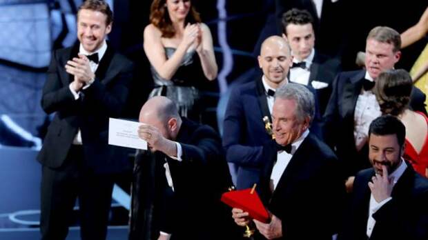 Однако когда съемочная группа картины вышла на сцену и от них уже прозвучали слова благодарности, организаторы заявили об ошибке. Оказалось, что лучшим фильмом академики признали "Лунный свет".