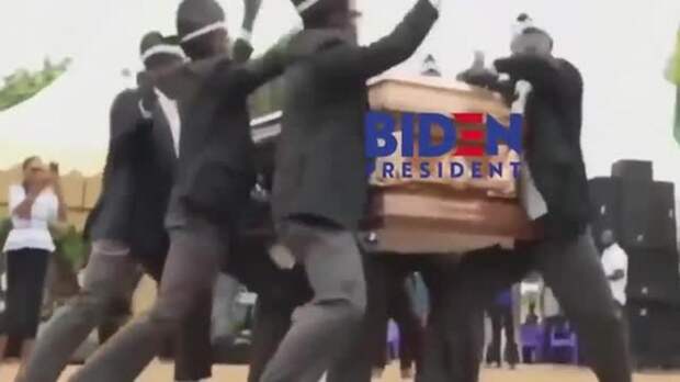 Трамп опубликовал на своей странице в Facebook известный видеомем, где темнокожие танцуют, неся гроб с покойником. На гроб Трамп поместил надпись "Президент Байден".
