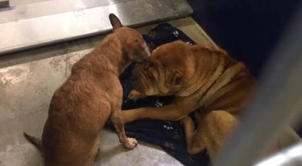 Работники приюта полагают, что собаки и раньше жили в одном доме. Однако за месяц пребывания в приюте за ними так никто и не пришел. При этом шарпей не только ничего не видит, также у него случаются судороги и ему требуется по-настоящему заботливый хозяин. Тому, кто решится на такой поступок, придется забрать из приюта обоих псов, поскольку они просто не смогут прожить друг без друга.