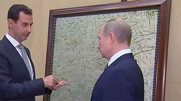 Президент Сирии Башар Асад подарил президенту России Владимиру Путину картину. Подарок он вручил во время встречи.