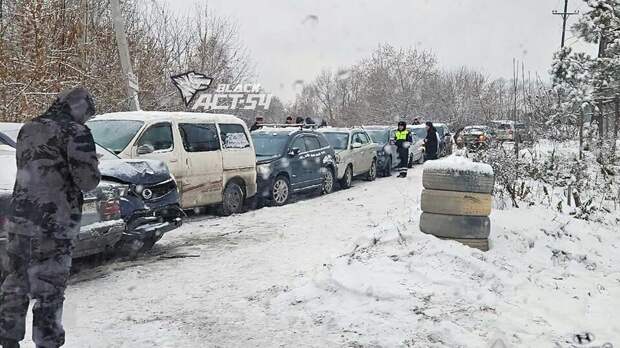 В Новосибирске произошло массовое ДТП на 15 автомобилей. Машины столкнулись в Октябрьском районе города.