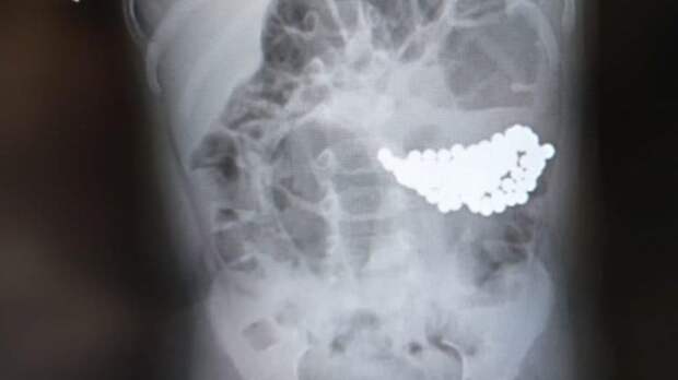 Обеспокоенные родители немедленно вызвали скорую помощь. После рентгеновского исследования девочку отправили домой, так как не заметили ничего подозрительного, а вот в желудке у ее брата собрался огромный ком из магнитных шариков."Специальными инструментами мы извлекли из желудка пациента аж 117 мелких инородных предметов. К счастью, магнитные шарики, притянувшись друг к другу, не успели нарушить функцию желудка", - приводит слова заведующего отделением гнойной хирургии № 2 Нодари Зурбаева пресс-служба столичного департамента здравоохранения.