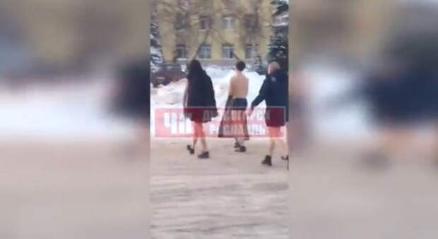 Как сообщают пользователи соцсетей, молодые люди были сняты в Рославле. На кадрах можно увидеть, как юноши переходят дорогу в трусах, накинув на голое тело куртки.