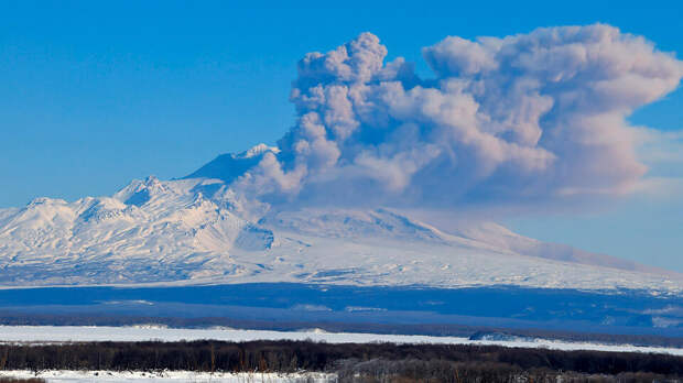 28 марта несколько поселков на Камчатке накрыло толстым слоем пепла. Выброс из вулкана Шивелуч взметнулся в небо на высоту более 11 километров.
