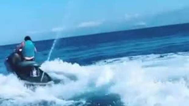 На кадрах артист катается на гидроцикле.