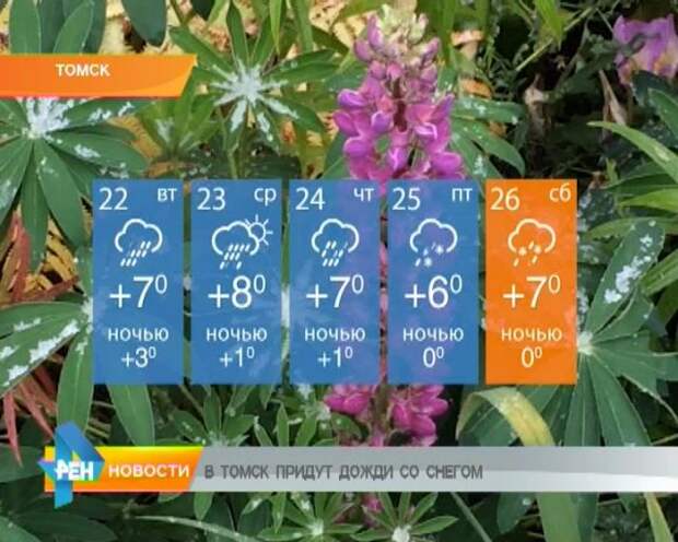 В ближайшие дни погода в Томске испортится. Синоптики обещают дожди со снегом и похолодание. Уже со вторника по ночам возможны отрицательные температуры, днем - не больше восьми градусов тепла. А в четверг и пятницу дождь сменится мокрым снегом. Относительное улучшение погоды можно ждать не раньше выходных, по прогнозам синоптиков, в субботу и воскресенье осадки прекратятся, а столбик термометра поднимется до +6.