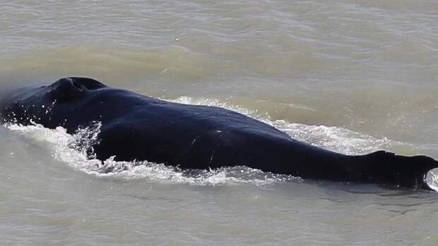 Два кита уплыли в океан, однако один остался в реке. Крупные животные, конечно, не могут стать добычей для крокодилов, однако в парке опасаются, что киты могут столкнуться с лодками.