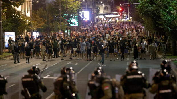 Внутрь здания забросали фаеры и петарды, несмотря на то, что полиции в тяжелой экипировке удалось оттеснить протестующих. Полицейские выставили кордоны, пытаясь оттеснить и рассеять жителей Сербии.Кроме того, в ночь на 17 августа в районе Нови-Београд в Белграде произошли беспорядки, в ходе которых правоохранителям пришлось применить слезоточивый газ. Также нападению подвергся офис Сербской прогрессивной партии бывшего премьера станы Воислава Шешеля, который публично выступил против демонстрантов. В здании разбиты окна, а его стены облиты краской.
