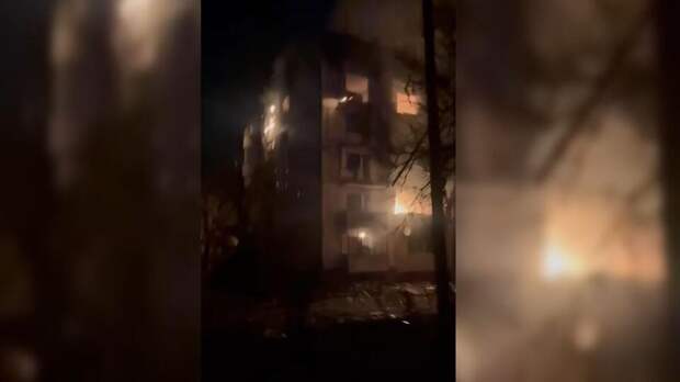 На кадрах видно, что украинские беспилотники попали в квартиры на пятом и втором этажах дома. Сейчас там бушует пожар. Повреждены балконы и остекление здания.