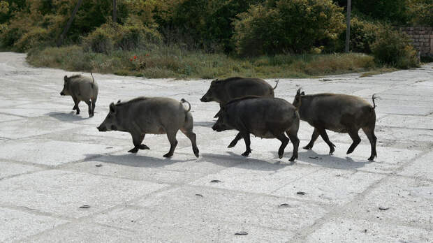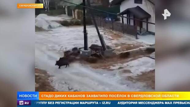 Поселок в Свердловской области взяли "в осаду" кабаны. Дикие животные по-хозяйски разгуливают по улицам.