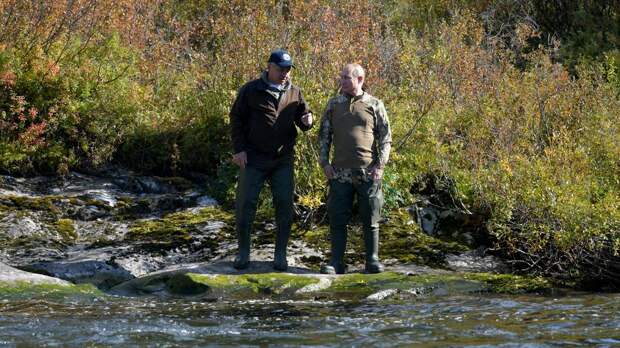 После прогулок по горным тропам команда президента спустилась к отрогам Енисея. На водной глади с красивыми бликами солнца Владимира Путина и Сергея Шойгу ждала рыбалка. Вот удочка заброшена, надо чуть "подобрать катушку", и можно – с большой аккуратностью – достать из воды свой первый улов с берега.