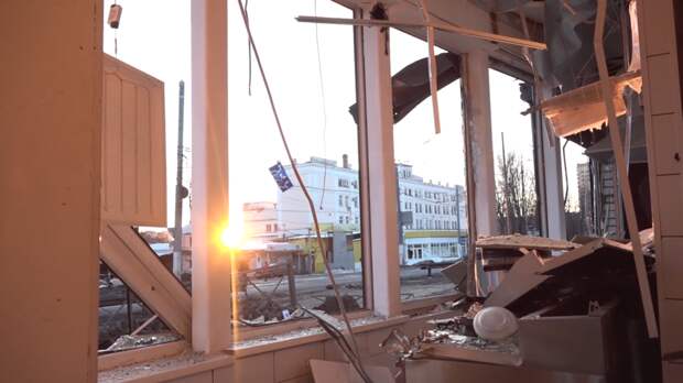 В распоряжении РЕН ТВ появились кадры последствий ракетного удара боевиков ВСУ. На них видны повреждения жилых домов, магазина, стоматологической клиники, автомобилей и дорог.