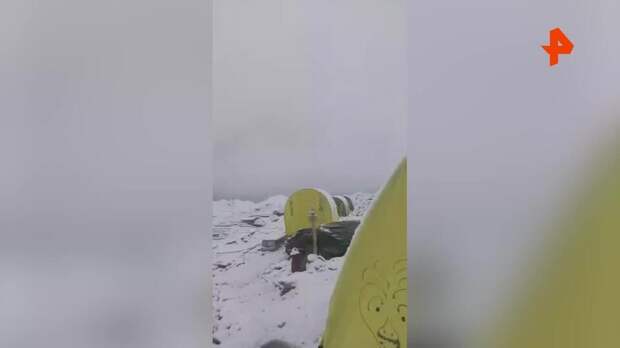 Начальник базы Южный Иныльчек Дмитрий Греков поделился с РЕН ТВ кадрами обстановки в лагере, на которых видно, что идет снег.