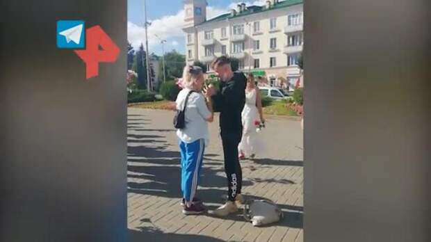 Парень сделал предложение девушке на митинге в Белоруссии. Видео с места события опубликовал белорусский Telegram-канал.