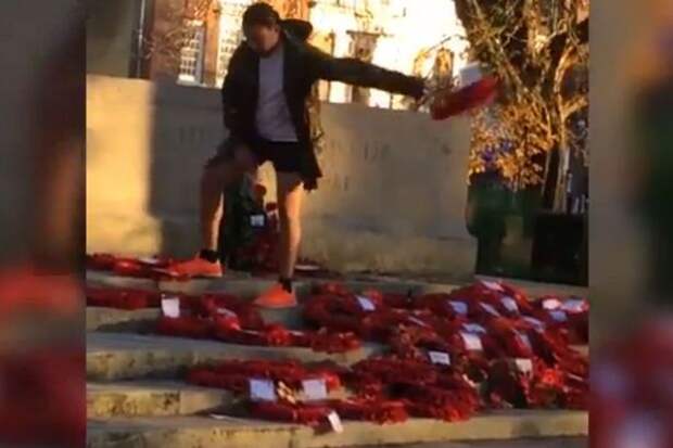 Очевидцы в Британии сняли на видео погром, который устроила странная женщина на мемориале в память о погибших в Первой Мировой войне.