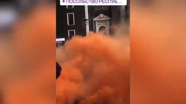 В посольство Белоруссии в Киеве бросили файер. Видео с места происшествия опубликовал Telegram-канал "Беларусь сейчас".