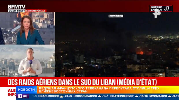 Отношение Запада к происходящему на Ближнем Востоке хорошо иллюстрирует фрагмент эфира на французском телеканале BFMTV. Ведущая, подключая корреспондента на месте, перепутала сразу все, что только можно, трижды неправильно назвав город, откуда ведется репортаж.