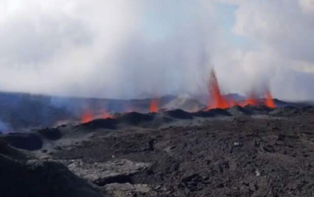 Как информирует агентство "Франс Пресс", извержение не представляет опасности для людей, потому что происходит в южной части острова, где нет населенных пунктов.