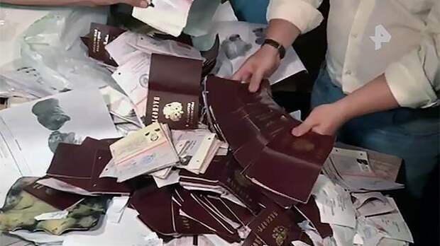 В этом заброшенном здании нашли буквально три пакета с российскими паспортами, правда, к слову, они недействительны в связи с тем, что пробиты дыроколом. Но вперемежку с ними лежали и неиспорченные паспорта.