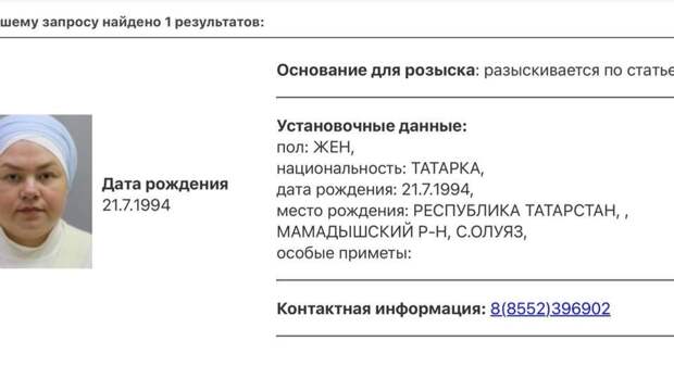 "Основание для розыска: разыскивается по статье УК", – говорится в базе МВД России.