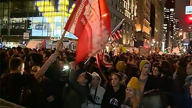 У Белого дома американцы даже жгут национальные флаги. Похоже, что победа Трампа многих выбила из привычной колеи, но в масштабах государства все эти выступления вряд ли можно назвать серьезными. В столице страны Вашингтоне протестуют примерно 500 человек.Самый масштабный митинг проходит возле резиденции самого Дональда Трампа в Нью-Йорке. Там несколько тысяч человек, а вот в остальных городах, вроде Филадельфии и Чикаго, акции собрали лишь сотни участников.