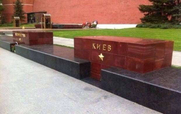 Стела Киева у кремлевской стены в Александровском осталась без цветов в день, когда в Москве приносили корзины с ними к стелам городов-героев.