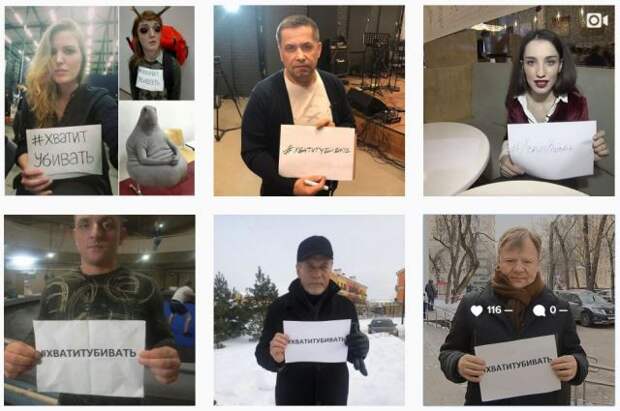 С нами уже тысячи россиян.Участниками стали звезды кино, рок-музыканты, спортсмены. Вы также можете не оставаться равнодушным и присоединиться к акции. Для этого нужно на своей странице в соцсетях разместить фотографию с нашим хэштегом #ХватитУбивать. Вместе мы поможем детям Донбасса.