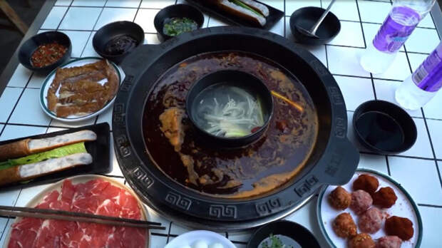 Это у нас в нем греют воду для чая. Китайцы в своих самоварах кипятят острый бульон, чтобы варить в нем различные закуски.