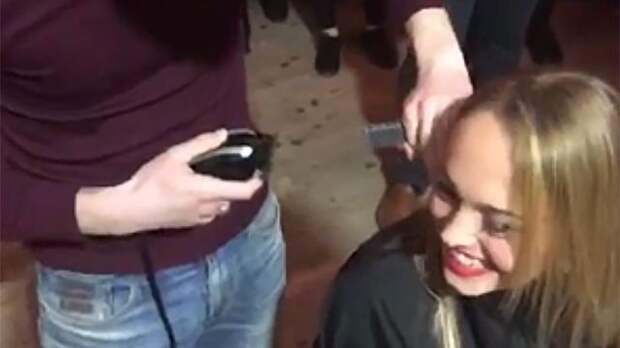 На записи видно, как несколько девушек согласились, но в самый последний момент передумали расставаться с прической.