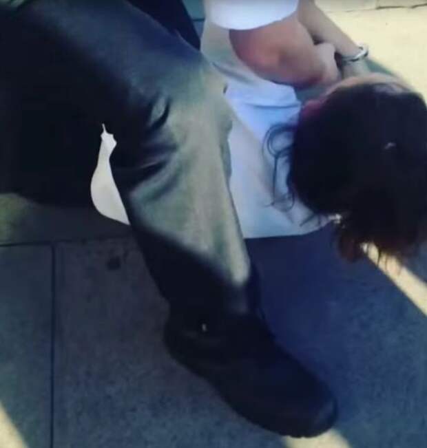 На видео попало, как полицейский повалил на тротуар 13-летнюю школьницу и оттаскал ее за волосы. Запись сделала сестра-близнец.
