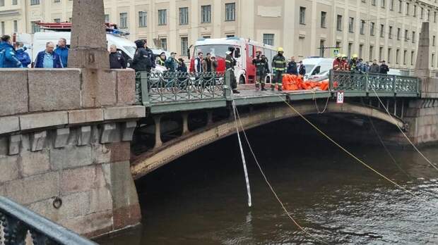 В Санкт-Петербурге автобус после столкновения с машиной пробил ограждение и рухнул в Мойку.