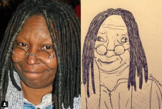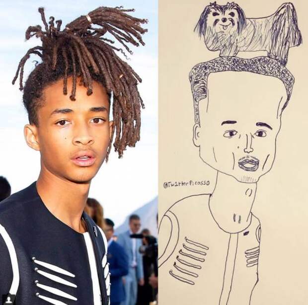На этих картинках художника под ником Tw1tterPicasso недостатки знаменитостей утрированы. Сами рисунки выполнены в таком стиле. Как будто их рисует ребенок.