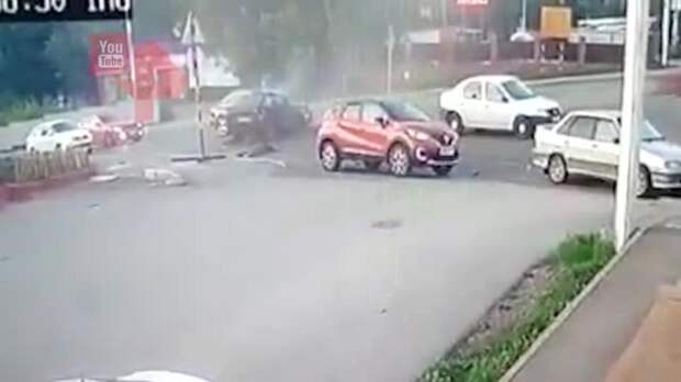 Момент аварии с участием семи автомобилей в Уфе попал на камеру наблюдения. Видео было опубликовано на YouTube.