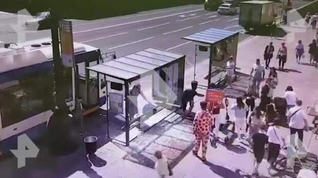 Скейтбордист протаранил стеклянную остановку на Невском проспекте в Санкт-Петербурге.