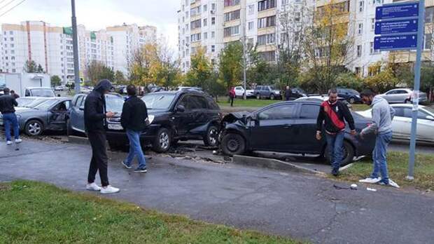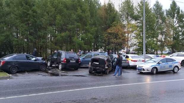 В пресс-службе УГИБДД по Москве сообщили, что автомобиль столкнулся с машиной, после чего отлетел и повредил еще пять транспортных средств.