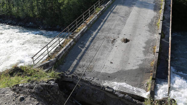 Причиной обрушения переправы стал подмыв грунта во время паводка. Планируется, что движение временно будет организовано по старому мосту через Кодор, который находится поблизости.