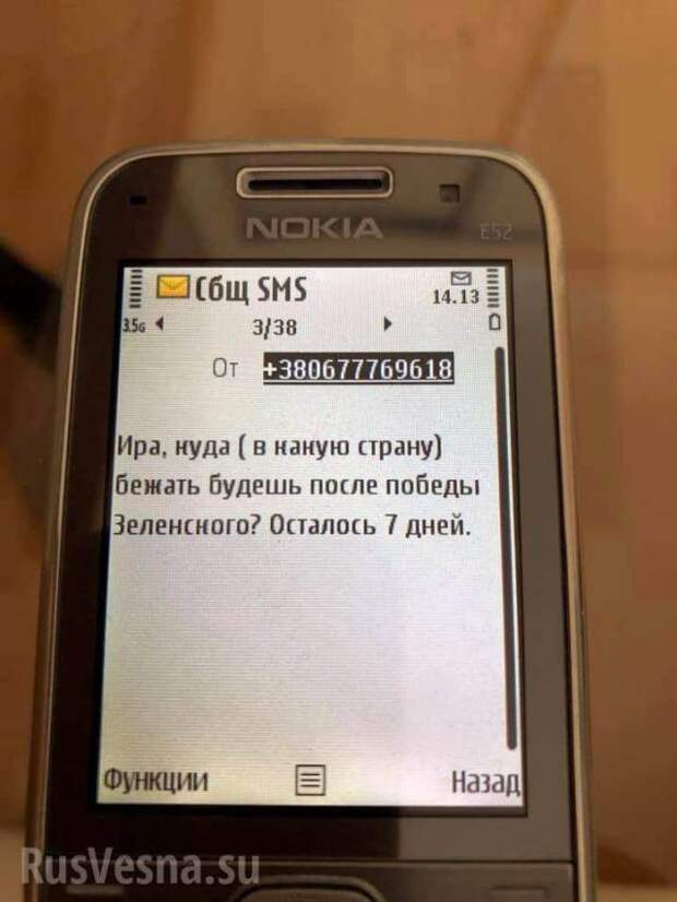 "Ира, куда (в какую страну) бежать будешь после победы Зеленского? Осталось 7 дней", - говорится в сообщении.