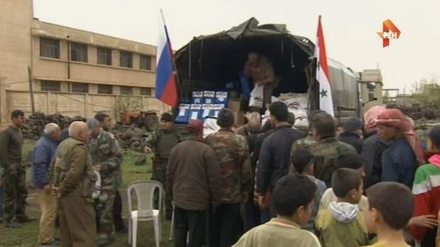 Жители Алеппо со слезами радости встретили российских военных. Грузовики с гуманитарным грузом уже несколько дней приезжают в новые, освобожденные от боевиков селения.
