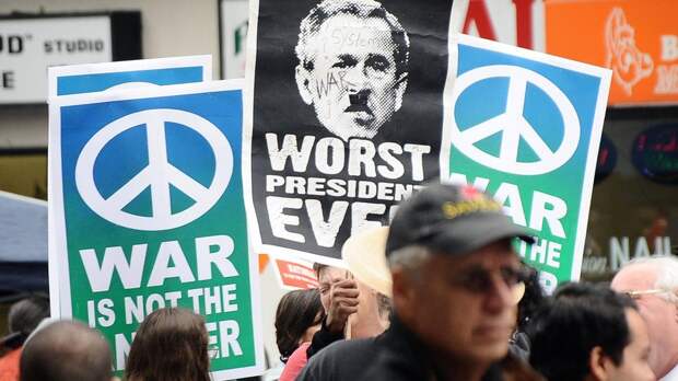Фото: Антивоенная акция протеста в Голливуде по случаю шестой годовщины вторжения США в Ирак. ZUMAPRESS.com Америка признает свои ошибки лишь скрепя сердце, и далеко не все американцы готовы к этому. А это значит, что все заявления новой администрации о том, что США больше не будут заниматься «насильственным распространением демократии», в любой момент могут быть обнулены, и значительная часть военных и политиков это поддержит.