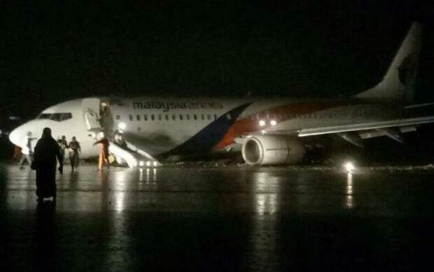 A Malaysia Airlines Boeing 737-800 (9M-MMX) has been damaged after sliding off the runway at Sibu Airport during a heavy downpour. pic.twitter.com/QnKTJ0czhF