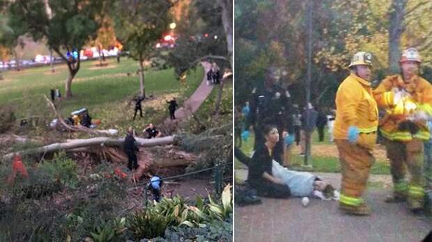 Пять пострадавших были госпитализированы. Среди них пятилетняя девочка, которая находится в критическом состоянии.Местные власти считают, что причиной падения дерева стала засуха в Калифорнии.