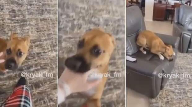 А пес словно понял приближение беды – он внимательно осмотрелся, а затем прыгнул на кресло и быстро принял расслабленную позу так, как будто давно уже здесь сидит.Интернет-пользователи отреагировали на видео множеством комментариев: