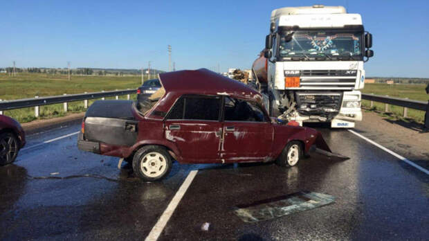 По предварительной информации, водитель ВАЗа решил развернуться и не пропустил грузовик, который буквально смял отечественную легковушку.