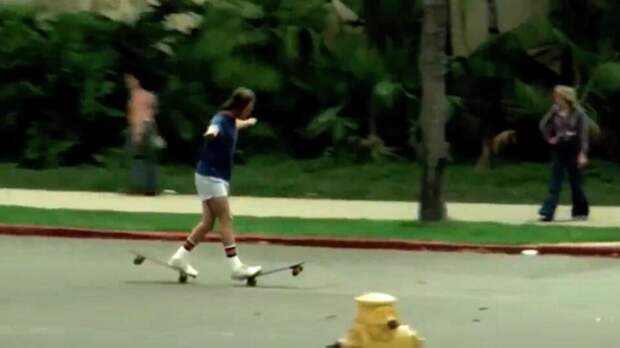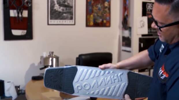 Скриншот видео «Он подумал, что это может быть интересная идея и это можно продавать. Он попросил фирму, которая производила роликовые колеса, сделать ему плоские доски и привинтить к ним маленькие колесики», - делится Максим Васильчук.
