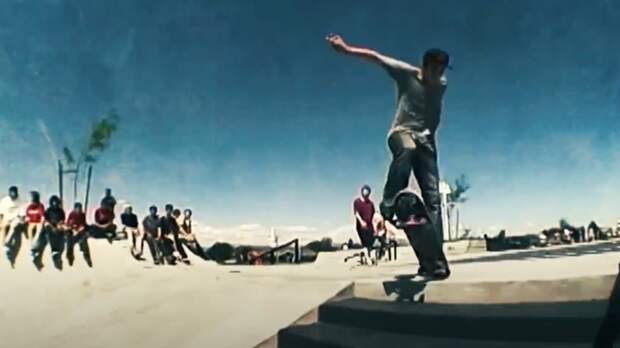 Скриншот видео «За три года удалось продать 50 миллионов досок. Стали появляться команды скейтеров. Первые соревнования прошли около обычной школы в Калифорнии, где все это и зародилось», - отмечает Максим Васильчук.