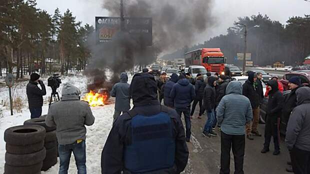 Полицейские и пожарные бездействуют, пока участники "автомайдана" под Киевом практически захватили все блокпосты на подъезде к городу и начали жечь покрышки.